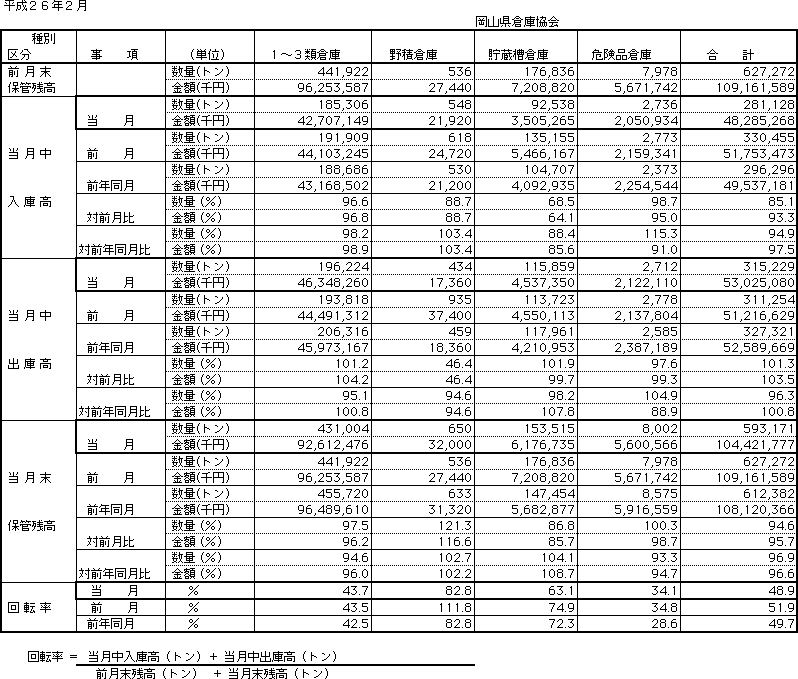入庫・出庫・保管残高・回転率表/平成26年2月分