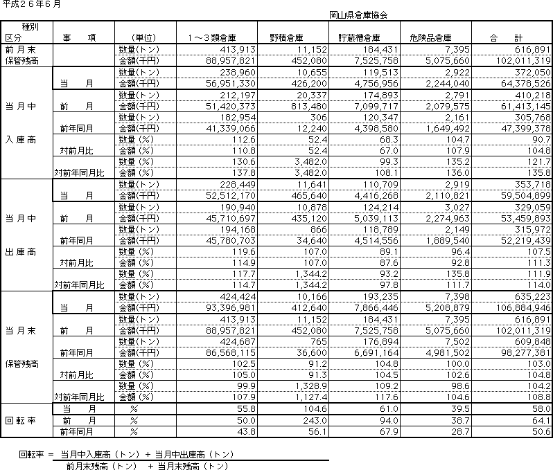入庫・出庫・保管残高・回転率表/平成26年6月分
